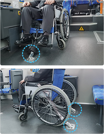 - ※ 乗降⼝が狭いバスなどについては、⾞椅⼦をたたんでご乗⾞いただく場合がございますので、あらかじめご了承ください。